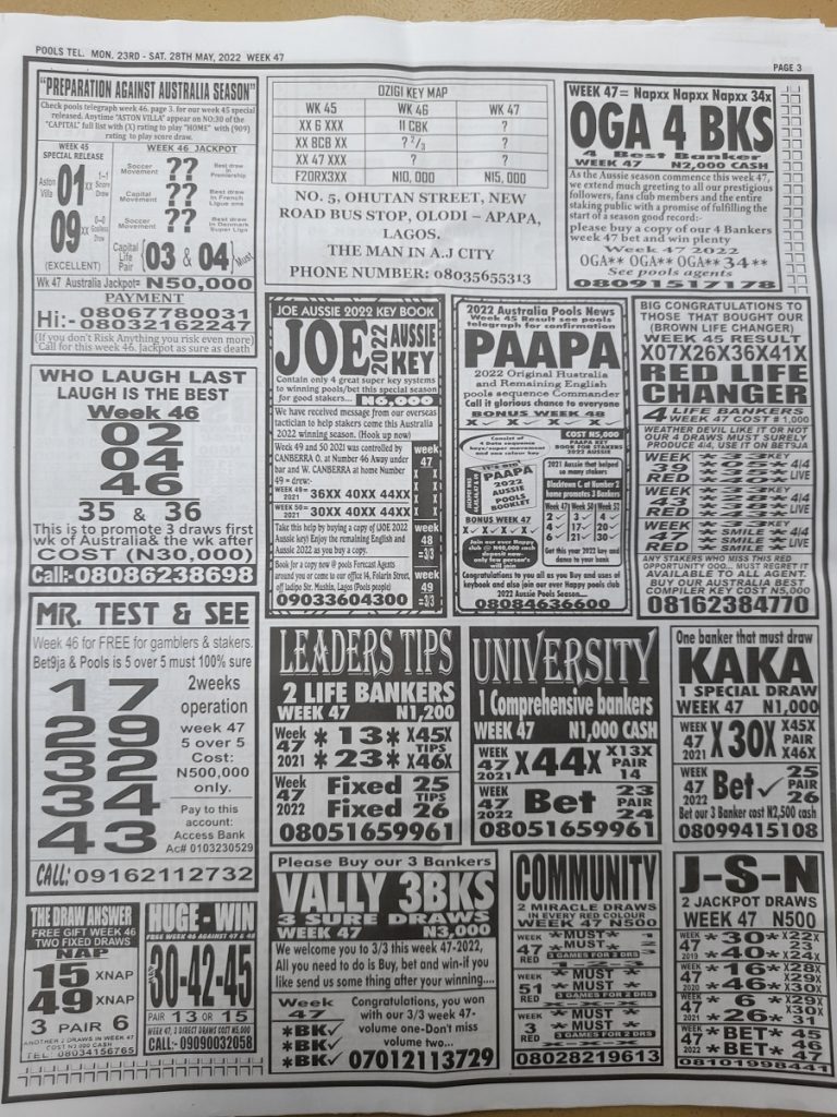 Week 47 Pool Rsk Papers 2024. Here we provide you with the best football papers such as bob morton, fortune ‘x’ matrix, capital international, dream international. Here, we furnish you with weekly and current pool fixture papers, pools rsk papers and other forecasting papers for your forecast.